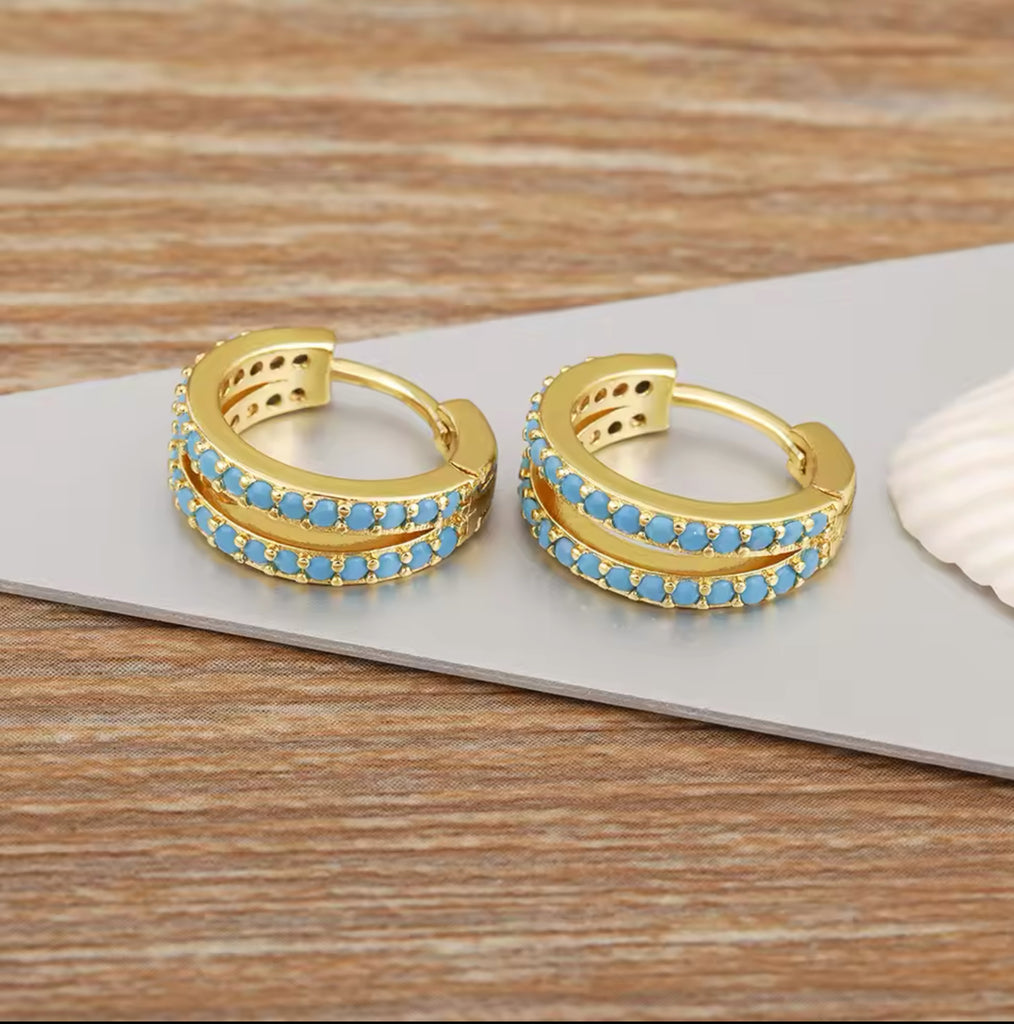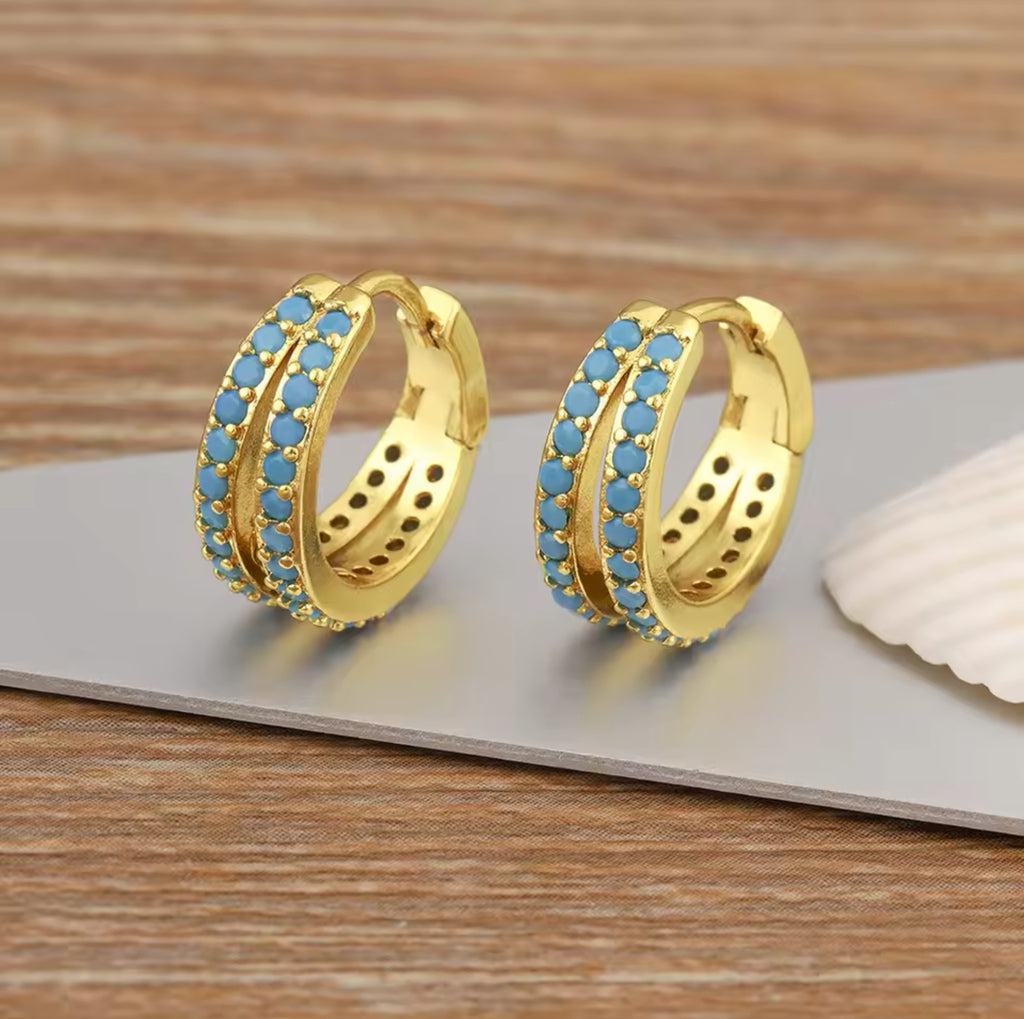 Gold Hoop Earrings with Turquoise Zircon – Elegant Small Hoops with a Pop of Color